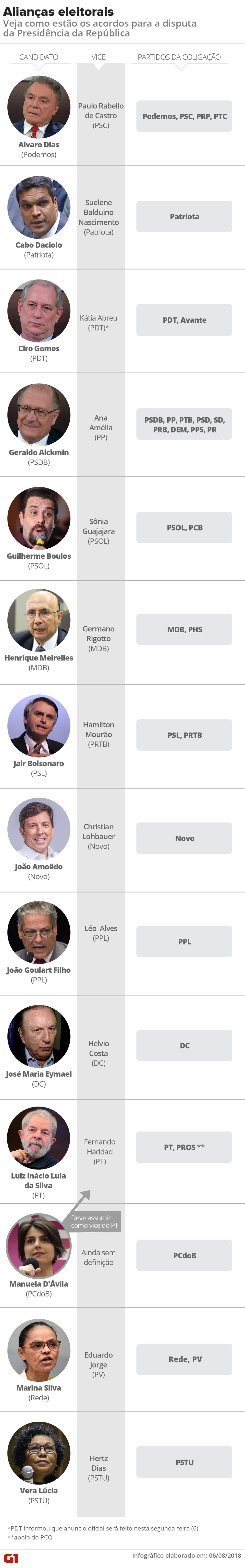 Eleições 2018: veja como estão as coligações dos candidatos à Presidência da República