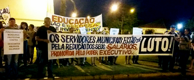 | Servidores do ensino cobram pagamento de benefícios garantidos por lei. Prefeito pretende pagar somente 50% |