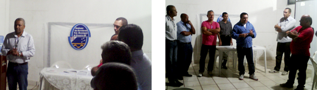 | Dirigentes da Federação parabenizam nova administração do Sindicato de Cruzeiro e Queluz durante cerimônia |