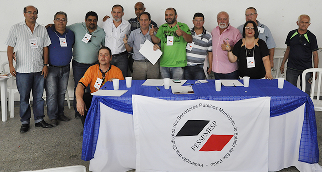 COORDENAÇÃO - Além de Jesomar, outros dois integrantes da coordenação desta Macrorregião já estão definidos. A tesouraria ficará com Clícia Mara Damaceno, presidente do Sinseri (Sindicato dos Servidores Públicos Municipais de Itaquaquecetuba) e a secretaria-geral com Givanildo Berto da Silva (Gil), que preside o Sindicato dos Trabalhadores Municipais de Praia Grande. A aclamação dos novos membros foi acatada por unanimidade. |