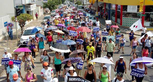 | Servidores mostraram forte disposição de luta e percorreram, debaixo de muito sol, as principais avenidas |