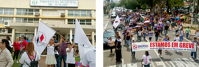 APOIO - Desde o início da greve, nossos diretores têm dado apoio total aos companheiros de Sumaré. Para nosso presidente, Aires Ribeiro, essa união é muito importante para a categoria. "Estamos unidos e fortes. A prefeita já teve uma derrota na Justiça e, se depender da nossa determinação, terá muitas outras. E os companheiros de Sumaré podem ficar despreocupados, pois daremos o apoio que for preciso para que suas reivindicações sejam atendidas.
