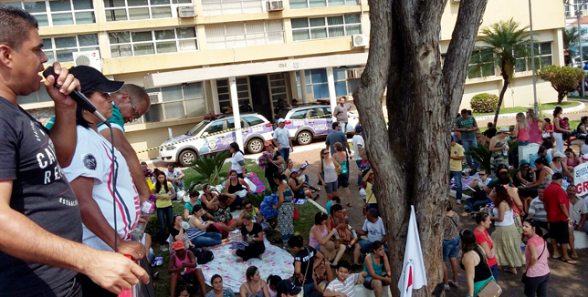 APOIO - Para nosso presidente Aires Ribeiro, a Federação continuará apoiando o movimento grevista até que a categoria saia vitoriosa. "Nosso apoio continua. Não vamos deixar que a prefeita faça o que bem entender quando o assunto é o Servidor público municipal. Cumprir o acordo sobre o dissídio de 2013 e repor a inflação é o mínimo que ela pode fazer".