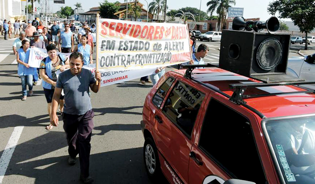 | Servidores de Marília protestam contra privatização do Departamento de Água e Esgoto com apoio da Federação |