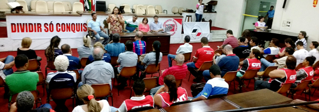 FEDERAÇÃO - Dirigentes das cidades de Votuporanga, Taquaritinga, Bebedouro, Tanabi, Pontal e Álvares Florence marcaram presença. Todos se manifestaram contra a divisão de base que fere a ética sindical e o princípio de unicidade da categoria do funcionalismo.