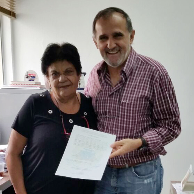 APOIO - Emocionada, Vali agradeceu o apoio da Federação. "A Certidão Sindical é o documento mais importante do Sindicato. Ele reforça nossa legitimidade como representante da categoria e é um prêmio pelo trabalho desempenhado pela atual diretoria. Graças ao apoio da Fesspmesp conseguimos esse importante documento."