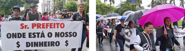 | Mesmo embaixo de muita chuva Servidores manifestaram contra Prefeitura na manhã desta segunda-feira (7) |