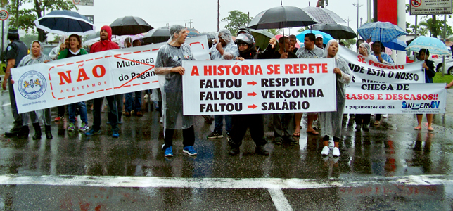| Trabalhadores questionam atrasos e escalonamento de salários. Essa é a quarta paralisação somente este ano |
