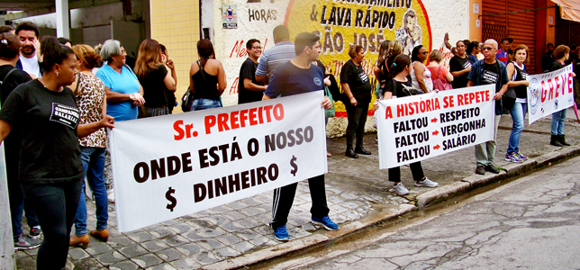 HOJE - Os Servidores realizaram um ato de protesto nesta segunda (7), às 7 horas, na Avenida Manoel da Nóbrega, sentido Santos. O protesto engloba também atrasos de benefícios. O bloqueio da Avenida se repetiu, mais uma vez, na tentativa de chamar a atenção da população para o descaso com o funcionalismo, que pelo 4º mês seguido recebe os salários e benefícios divididos. |