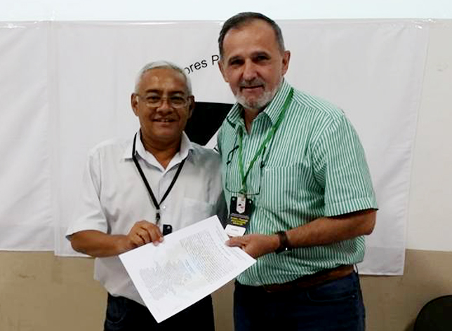 | Aires Ribeiro entrega Certidão Sindical ao presidente Mirinho. Sindicalista atua com bravura em defesa da classe |