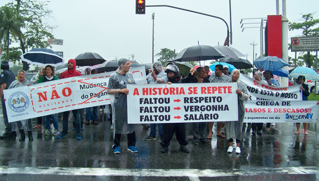 NOVELA - O pagamento dos salários e benefícios dos Servidores de São Vicente vem sendo parcelado há 6 meses. Em protesto, já foram realizadas cinco paralisações para reivindicar a regularização da situação. Passeatas, apitaços, bloqueio de avenidas, manifestações na Câmara Municipal, entre outras ações, têm sido as armas dos trabalhadores na luta contra o desrespeito.