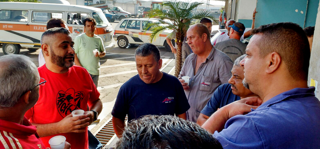 | Pedro Zanotti, presidente do STAP Guarulhos, conversa com os trabalhadores do Departamento de Transportes |
