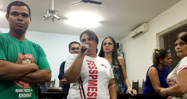 | Regina Leite, presidente do Sindicato, liderou o movimento que paralisou a sessão e impediu votação do projeto |