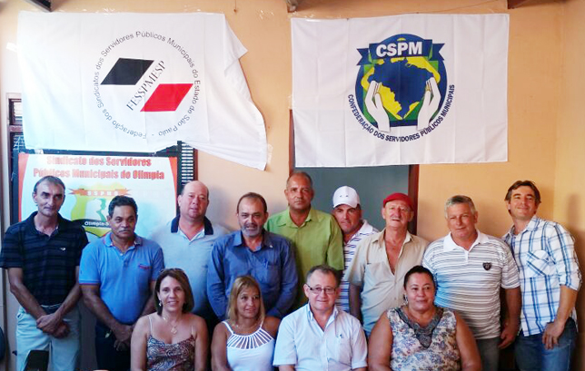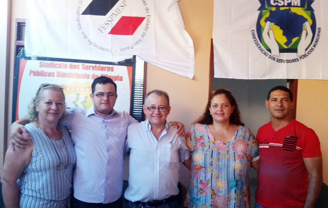 Meiri de Fátima Marzochi Vilela (Tanabi), Rafael Ribeiro (Pontal), Sanny Lima Braga (São José do Rio Preto) e Lourival Basílio (Bebedouro) representaram a Federação na cerimônia de posse da diretoria do Sindicato dos Servidores de Olímpia, dia 13. O evento foi muito concorrido e comprovou o respeito e a admiração que Jesus Buzzo, presidente reeleito para mais três anos, tem da categoria.