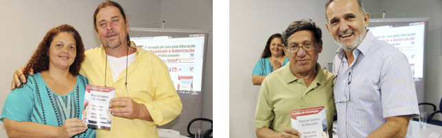 O material trata da obrigação das Prefeituras municipais em garantir a criação ou revisão do Plano de Carreira da Educação até o mês de junho, em todo o País, conforme a Meta 18 da Lei Federal 13.005/14. Celso afirma: "Ficamos felizes com o suporte da Fesspmesp. Nunca trabalhei tanto. Mas também nunca senti tanta satisfação em trabalhar como agora. |