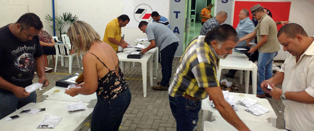Nossa Federação organizou mais um pleito sindical nos dias 25 e 26 de fevereiro. A equipe de eleições da Fesspmesp, sob a coordenação do tesoureiro Cláudio Aparecido dos Santos (Ted), trabalhou duro para que tudo transcorresse bem no processo eleitoral. Com 85,13% dos votos válidos, a Chapa 1 - "Sindicato Forte - Sempre com o Servidor", encabeçada pelo atual presidente Pedro Zanotti Filho do STAP, se sagrou vencedora.