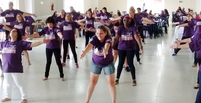 EVENTO - A manhã iniciou com exercícios de alongamento a fim de incentivar as trabalhadoras a realizarem atividades físicas no dia a dia, auxiliando na qualidade de vida das companheiras. A descontração tomou conta do momento, seguido de aulas de dança especial e brincadeiras para interação entre as participantes.