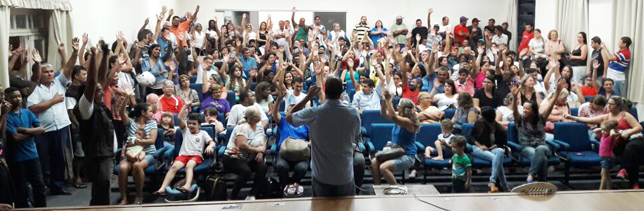 | Mauro Cirino coloca em votação contraproposta da prefeitura. Por unanimidade, os Servidores votaram SIM |