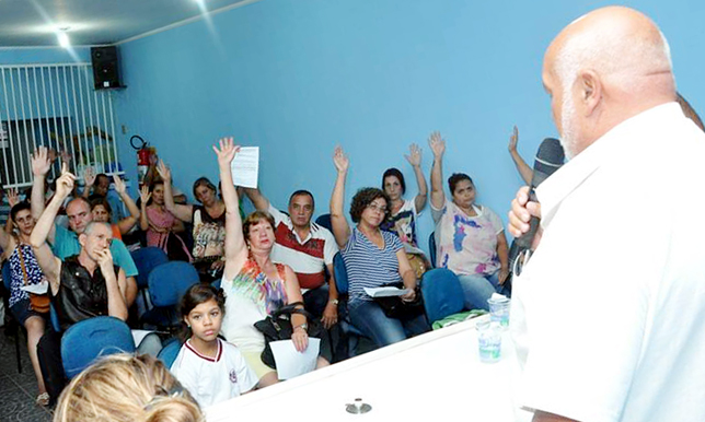 | Jesomar Alves Lobo, presidente do Sindicato, coloca em votação contraproposta da Prefeitura para o reajuste |