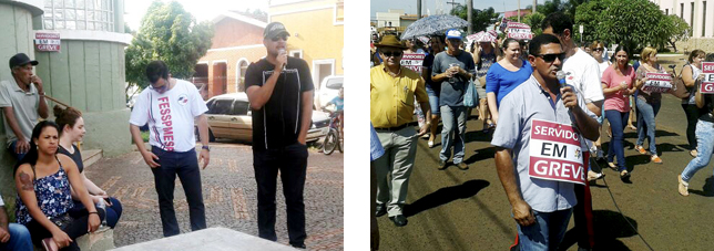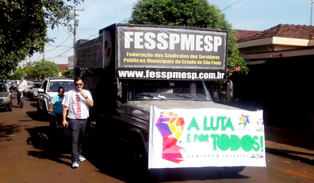 FORÇA - Dia 22 de março, os companheiros tomaram as principais ruas da cidade para chamar atenção do prefeito André Luís Carneiro que não quer negociar com a entidade. O movimento conta com todo apoio da Fesspmesp, que disponibilizou também um caminhão de som e convocou diversos líderes sindicais da região para reforçar o ato. |