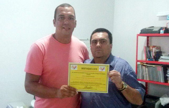 O Sindicato dos Servidores Públicos Municipais de Lorena realizou hoje (6), a entrega de uma homenagem ao nosso assessor técnico Sidnei Aires. A entidade reconhece publicamente Sidnei como destaque de 2015, através de certificado entregue ao companheiro pelo presidente Francisco de Carvalho, o Chiquinho. A homenagem repercutiu positivamente na Macro 1 - Mauá.