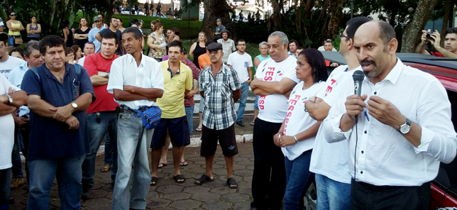 MOBILIZAÇÃO - O ato, que ocorreu no fim da tarde na praça Benedito Silveira Camargo (Brasilinha), culminou em decisão do estado de greve por decisão da categoria. Os companheiros José Erivan e Edna Barbosa da Macro 2 também estiveram no local para fortalecer o movimento. Nova mobilização está agendada para o dia 3 de maio, às 17h30, em frente à Prefeitura. |