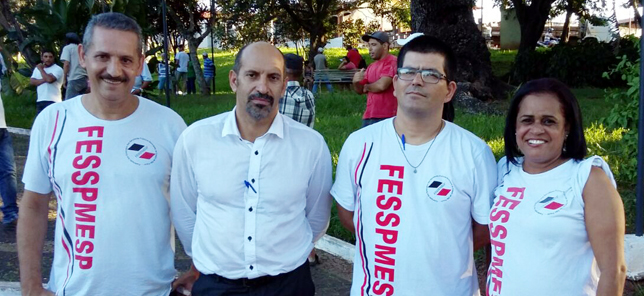 | Advodago e dirigentes da Fesspmesp com o companheiro Silvano Pereira, do Sindicato dos Servidores de Piraju |