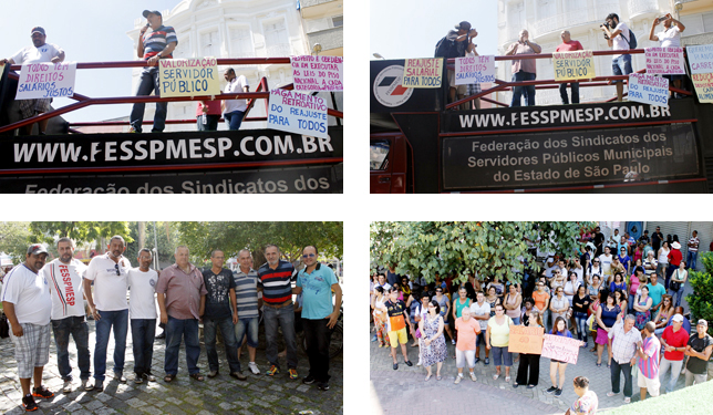 Várias lideranças da Fesspmesp estiveram no último sábado (9), mesmo debaixo de um escaldante sol, em Guaratinguetá, junto ao líder do Sindicato dos Servidores do município, José Eduardo Ayres, para fortalecer o Dia de Luta do Servidor. O evento ocorreu na praça Conselheiro Rodrigues Alves e também contou com a participação de centenas de trabalhadores.