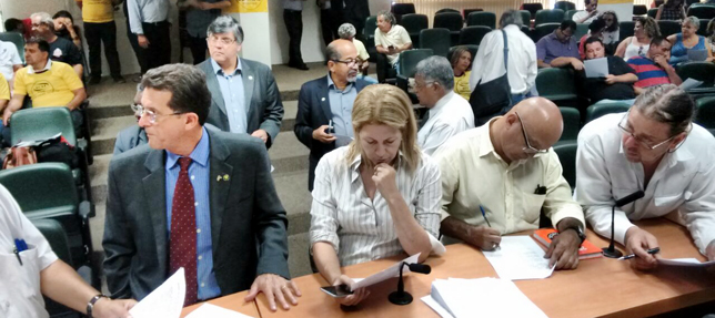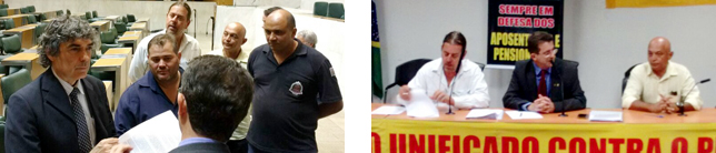 FORTALECIMENTO - Representantes dos Sindicatos de Jaguariúna, Peruíbe, Itu e Itapecerica, entidades filiadas à Fesspmesp, também marcaram presença e fortaleceram o movimento. Após o término dos debates, os líderes percorreram os gabinetes dos deputados para pedir apoio e apresentar justificativas sobre a negativa contra a matéria.
