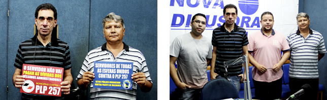 | À esquerda, Araken Lunardi e o dirigente Alexsandro Salles (Americana) exibem material de repúdio ao PLP 257 |