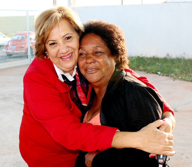 JULHO DE 2015 - Durante vista em Unidade de Saúde, dirigente Angélica tem o carinho de Servidora Aposentada