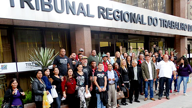 | Servidores, diretores do Sindicato e o advogado da Fesspmesp, Jamir, compareceram em bom número no TRT |
