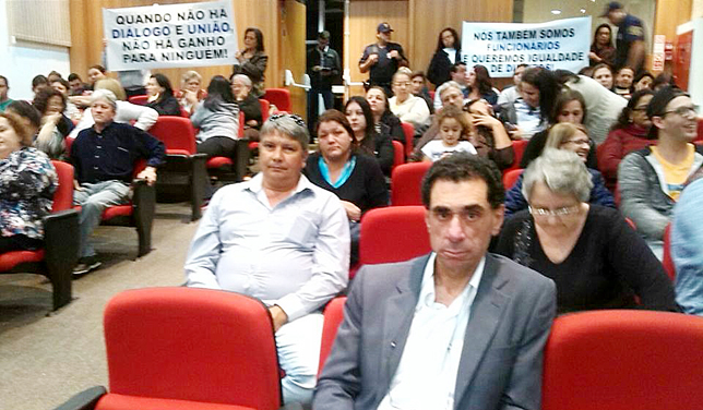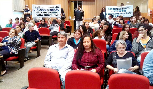 ENTENDA - O projeto que já estava na Câmara Municipal seria aprovado sem a presença do Sindicato. No entanto, os trabalhadores da Guarda presentes na audiência exigiram que a entidade comparecesse para acompanhar o processo. Com representantes da Fesspmesp, os diretores foram