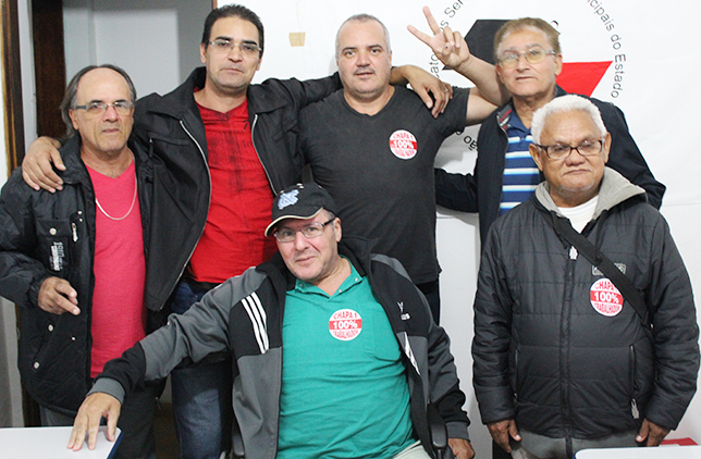 | Componentes da Chapa 1, do Sindicato de Ubatuba, ficaram felizes com o resultado após apuração da eleição |
