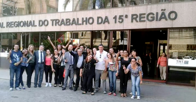 | Dr. Jamir comemora com os dirigentes do Sindicato a vitória obtida. Conquista é recompensa da perseverança |