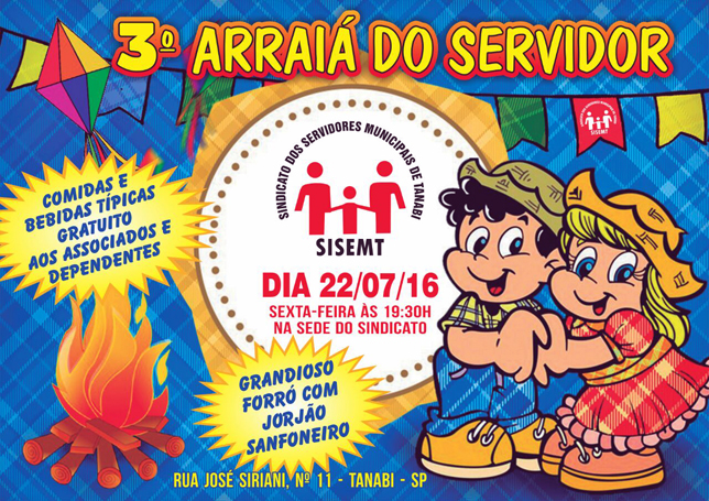 O Sindicato dos Servidores Municipais de Tanabi está organizando para o dia 22 de julho, o "3º Arraiá do Servidor". A Festa é uma iniciativa da diretoria da entidade, sob a liderança do presidente Alessandro Pollo, e visa reunir o funcionalismo para confraternizar e partilhar momentos de alegria.