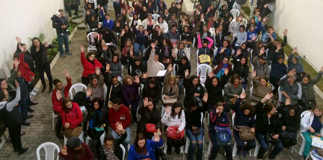 | Durante assembleia, os Servidores da Educação votaram por unanimidade pela adesão ao movimento paredista |