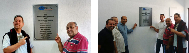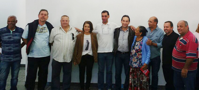| Lideranças mostram a placa com os nomes dos diretores do Sindicato, que prometem avanços para a categoria |