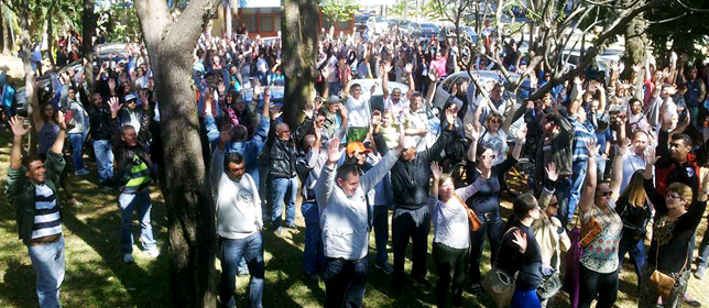 | Servidores unidos na última assembleia realizada sexta (12). União da categoria demonstra a revolta de todos! |