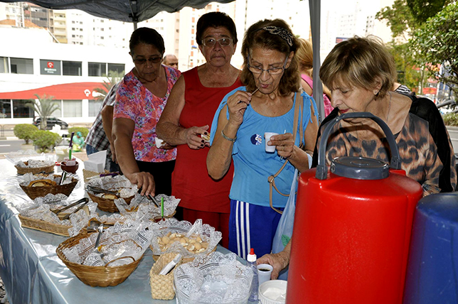 | Sindicato ofereceu aos companheiros aposentados stand com mesa farta e diversas delícias para degustação |