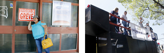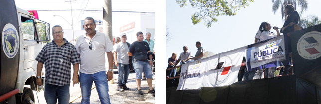 APOIO - Estiveram presentes no ato, a fim de oferecer total apoio aos companheiros e traçar novas estratégias de luta, nosso presidente Aires Ribeiro, o secretário de finanças Cláudio Aparecido dos Santos, mais conhecido como Ted, e o diretor de imprensa Denilson Bandeira. A Fesspmesp também disponibilizou o caminhão de som para fortalecer a paralisação, chamar atenção da Administração Municipal e informar ao povo sobre as intransigências e descaso praticados contra o funcionalismo.