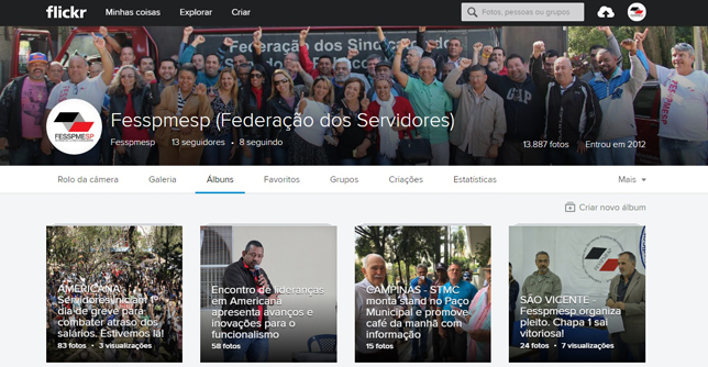 A Federação possui muitas plataformas para divulgação de suas ações e dos filiados. Uma das com maior conteúdo é o nosso Flickr. A rede funciona como um banco de imagens em que os arquivos podem ser armazenados em alta qualidade e vistos por qualquer pessoa. Desde 2012, ano em que começamos a utilizar o serviço, ampliamos o uso e hoje temos quase 14 mil fotos disponíveis.
