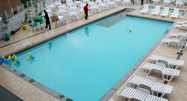 | Área de Lazer do Sindicato possui piscina adulto e infantil, além de espreguiçadeiras; materiais são de qualidade |
