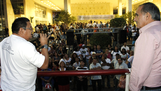 | O coordenador da Macro 2 - Campinas - Tadeu Cohen, ao lado do presidente Aires Ribeiro, durante mobilização |