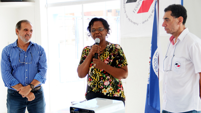 | Mirtes Batista, presidente do Sindicato de São João da Boa Vista, dá as boas-vindas aos dirigentes e convidados |