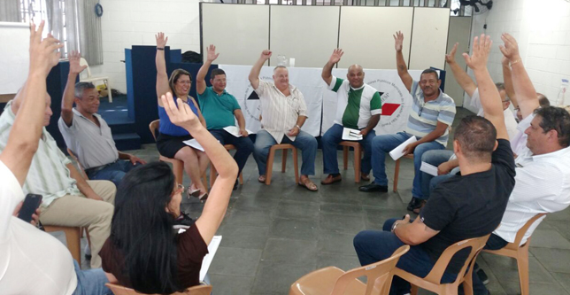 COORDENAÇÃO - Os interessados em desenvolver as atividades manifestaram seu desejo e, por meio de votação, os demais dirigentes escolheram a equipe que ficará à frente da coordenação no biênio 2017/2018. Os coordenadores eleitos foram: Lourival Neres Pontes (Mauá); Antônio Rodrigues dos Santos, o Toninho do Caps, de Osasco, e Adalberto Félix Rocha (Itapecerica da Serra).