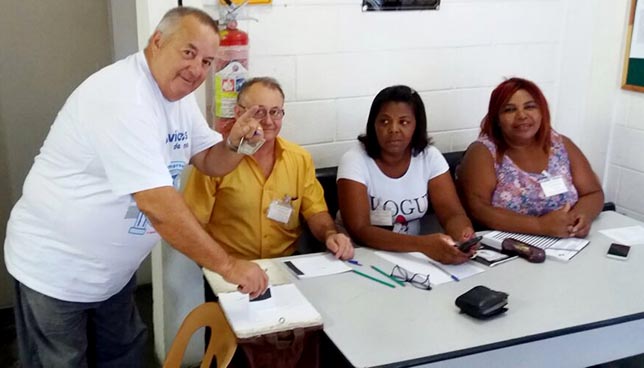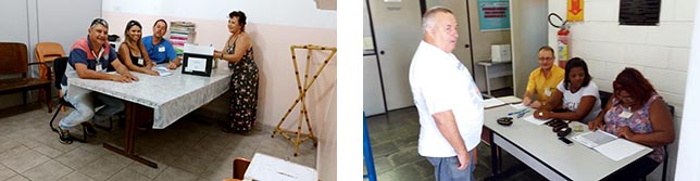| Equipe de eleições da Federação organizou a votação tanto da urna itinerante quanto a fixa na sede do SSPMS |
