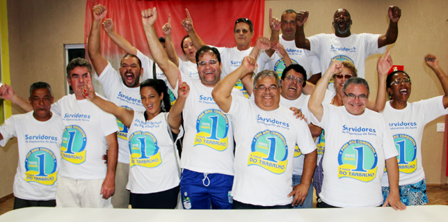 | Dirigentes comemoram vitória acachapante nas urnas. Servidor mostra que confia na experiência destes líderes |