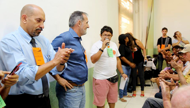 | Presidente Aires Ribeiro marcou presença na assembleia do STMC liderada pelo compnaheiro Tadeu Cohen |