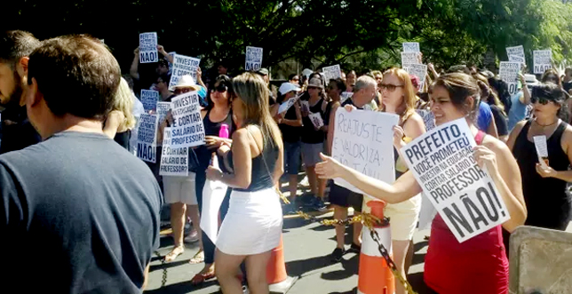| Professores tomam as ruas da cidade em grande protesto contra o descaso da Prefeitura pelo não pagamento |